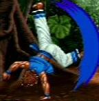 強力な下段突進技。くるくる回る。