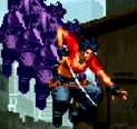 らんまの超技乱舞篇で九能センパイ♪が使っていた飛びのき突きと同じ技といえばわかるでしょうか?…余計、わからないかも。