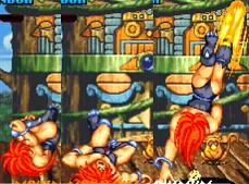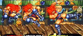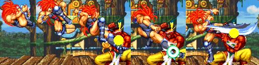 前方に跳ねて飛び蹴り、更に蹴り。強だともう1発追加。