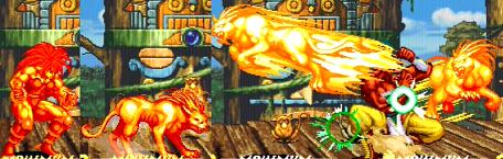 突進して、弱だと爪を振り降ろす。強だと燃える爪を振り上げる。