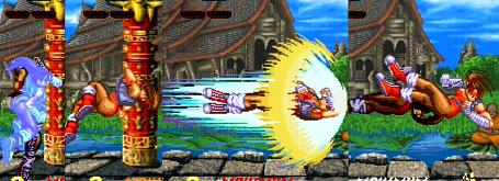 地上版の強がヒットすると浮くからバーニングリボルバーで追撃可能。奇襲に時々。