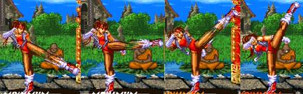 上中下段に高速キック。連打を続けるとずーっと蹴ってる。連打を止めるとハイキック出して終わり。