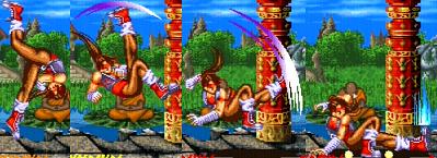 無敵対空技。ジャンピングアッパー。一番左の腕を構えてる状態でも攻撃判定があるみたい…。