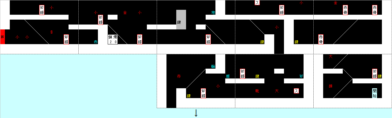 ノーダメージ最大の敵はスタートエリアの上にある赤骨が3体いるエリア。上の赤骨2体が重なって動くようになるまで下で我慢しましょう。