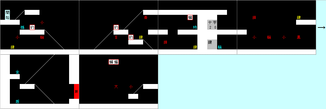 盾Bを回収し、左に突き進んで、ホワイトキーをゲットしたらゴールへ。宝箱にはロクなアイテム入ってないので無視。
