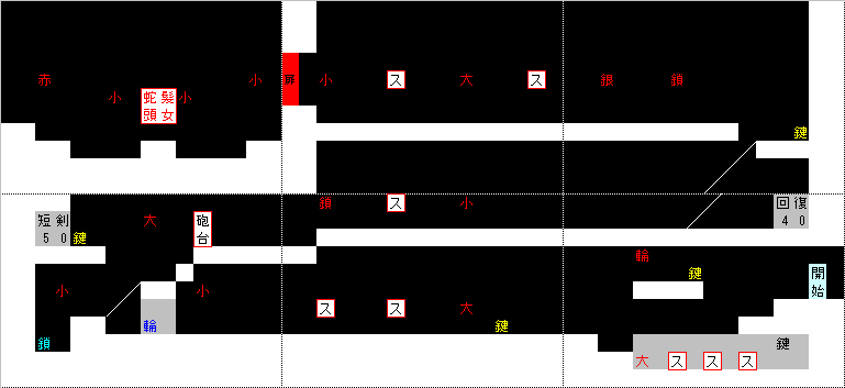 砲台は無敵でなくても段差利用して簡単に倒せるのであまり気にしない。これでもかこれでもかと鎖のムチがあちこちに出ますが、交換はしません。