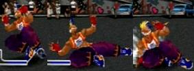 一見するとダッシュ投げですが、下段判定の打撃技。発生が遅いので連続技に組み込めず、そうそう決まりません。