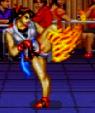 片足立ち状態で炎に包まれた足で高速で蹴る技です。