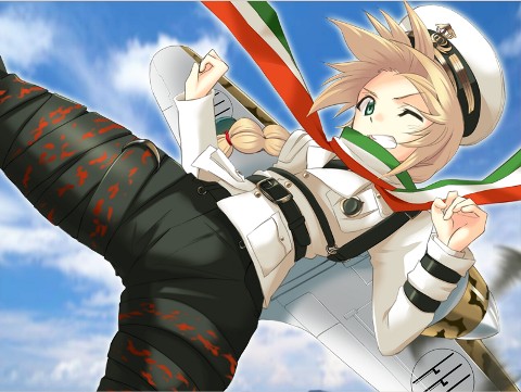 | クラウディア マッキMC202.フォルゴレ 2より参戦。戦力外のネタ乙女ベローチェしか参戦せずふざけてるとしか思えなかったイタリア軍から遂にまともな乙女が。ホントに普通に頼れるお姉さんだった。イタリア軍…やる気あったんだ!でも上述の通り家庭用ではまたイタリア軍サボってるよ。 | ![]() | ![]() | ![]() |