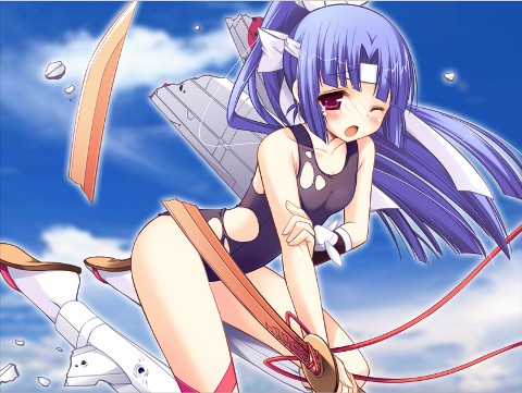 上段はPSP版。下段はPC版。PC版には家庭用ゲーム機版で追加されたキャラを追加導入し破れグラフィックをPC版準拠にしたデータも存在するのですがCG集に収録されず「被弾CG」が表示されたその場でしか見れないため、背景が一致せず、また機体性能を調整出来ないためダメージ調整も困難なため申し訳ないけど無理。リーリャの最終被弾だけスクショ撮ってあったのでそれだけ。
