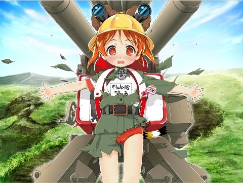 | ヴィルヘルム 88mm FlaK18 2より参戦。巨大砲塔を背負ったただの幼女じゃねぇか!88mm砲とか凄い。本作に登場するドイツ軍乙女では最古参。中身はおばあちゃんだ、まあ幼女なんだけど | ![]() | ![]() | ![]() |