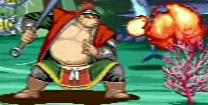 | 酒樽で酒を飲み樽を放り捨てる | 見たまんまこれだけ | 棍棒をブンブン振り回し…棍棒がすっぽ抜けて飛んでいく | 笑いながらガッツポーズ |