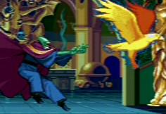 非常に大きなモーションから両腕を前に掲げ、そこから炎の鳥を飛ばす…邪神斎最強の魔法。