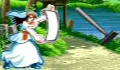 ちなみに一見して飛び道具のようですが、実は攻撃判定発生と同時に絹の前方一帯に「攻撃判定」が発生します。つまり攻撃範囲内にいる相手なら、遠くにいようが近くにいようが当たるタイミングは同じです。実際「写真8枚目」で既に攻撃判定は発生しており…この術自体が最大で「3/4画面」のリーチがあるので、最大に離れている場所から使うと「何が当たったの?」という感じですね。で、ヒットしてから遅れて金槌が飛んでいく…と。