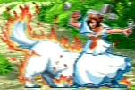 出が遅く最初の軌道が真上に上昇という事で、対空として使うのが基本だと思われます。絹を斬らせて犬で燃やす。犬ごと斬られる可能性もありますが…。