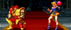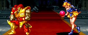 | キャロル | いい男をなぐるのはイヤだけどこれもあの獅子王のせいね! (NICE THREADS. I ALMOST HATE HAVING TO CRUSH YOU.) |