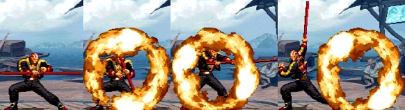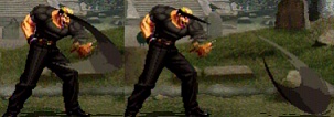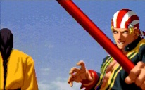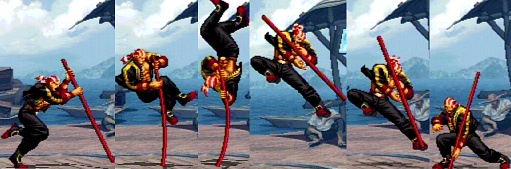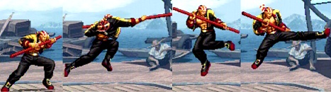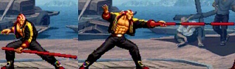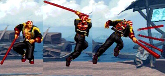 まず、牙刀。中国拳法系はKOFには結構いるわけで、敢えて牙刀であった理由がいまいちわかんないです。ストーリー的にも存在意義がいまいちわかりません…牙刀オヤジが絡んでくるのかと思えば何も無し。ギース様は優勝しても約束を守っていない。このチームの公式ストーリーは意味深げにやってるだけで、実際まったくストーリーに絡んでないんですけど。ギース様が何を考えているのかとか。牙刀にも注意を?接触してくる男?