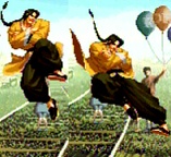 突進して匕首で突いてダウンした相手を蛇使いで乱打して噛み付いて投げ飛ばす技。
