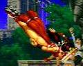 かなり高性能な気がする突進技。キャンセルから出しても直接出しても全然OK。が、中段判定なユリの燕翼の方が強い!…んじゃないかなぁ…強いといいなぁ…っつうかキングばっかりずるい!あっ、強いって認めてしまった。龍虎の頃は使い道のない技だったのにぃ。