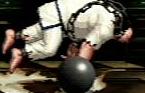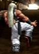 キム直伝の蹴り蹴り技。チャンはいつまで経っても覚えない…ダメなデブである。