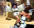 スタンダードルートの止めの技は一幕での百鬼夜行のフィニッシュ技。そして特殊ルートのフィニッシュ前の技は一幕の素手技です。容量のムダ使いですな……。ネオジオCDではさぞや痛かったでしょう、こんな乱舞奥義の一瞬のグラフィックの為に…おかげでボイスは「れっつだんしんぐ」ではなく「そぉれ」に変更されてます。