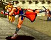 連続して攻撃しながら前進する真超力。最後のサマーソルトキックが当たると相手を空中で捕まえて投げを仕掛けて、最後に挑発して終わり。