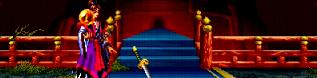 追手に驚愕の色が走った。蘭丸の血を浴びた封の剣から発せられた光は覇王たちの周囲に広がり、信長、光秀、そして蘭丸の亡骸を包むと同時に、僅かに床面から浮き上がらせていた。黄金城の解放である。蘭丸の血に反応し、ついに黄金城への道が開かれたのであった。このままでは史上最も稀な暴君の手に黄金城が渡ってしまう…。だが、この瞬間を最も待ち望んでいたはずの信長は、なおも蘭丸の屍を抱え呆然としているのみであった。すでにどのような理由で黄金城の鍵が開かれたのかを考えることもできない。ただその腕の中で冷たくなっていく最愛の寵臣を見つめている。
