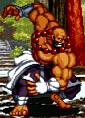 片手で相手を掴み上げてボーリングでもするかのように相手を投げつけるコマンド投げ。
