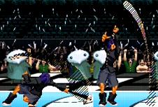 突進して下段にステッキを振るって、その後に振り上げる技。判定は下段>下段。