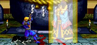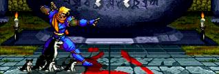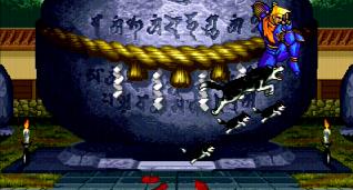 姿を消した後に4体に分身する技で半蔵の影分身に該当する技です。ボタンで4カ所から出現位置を選ぶ事が出来、相手を幻惑させる事が出来ますが、直接ダメージに結びつくわけでもなく冷静に対処されると自分がダメージ受けます。使い道は無いかと…