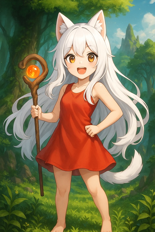 タイトル画面で真ん中にいる本作を象徴する髪の毛と猫耳が一体化した少女。タイトル画面を見ると剣士みたいだけどウィザードです。杖で殴っても十分なダメージ出るけど、この子の魔法しか通らない敵がいるし遠距離から3発も弾を飛ばすのでかなり強い。